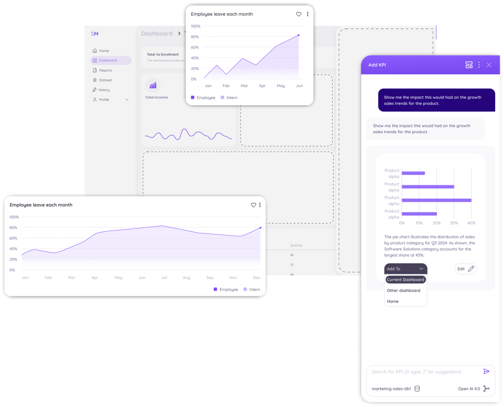 Example: When a retail manager sees an unexpected dip in sales, the integrated AI agent suggests launching a targeted promotion, so the team can act immediately to recover lost revenue.