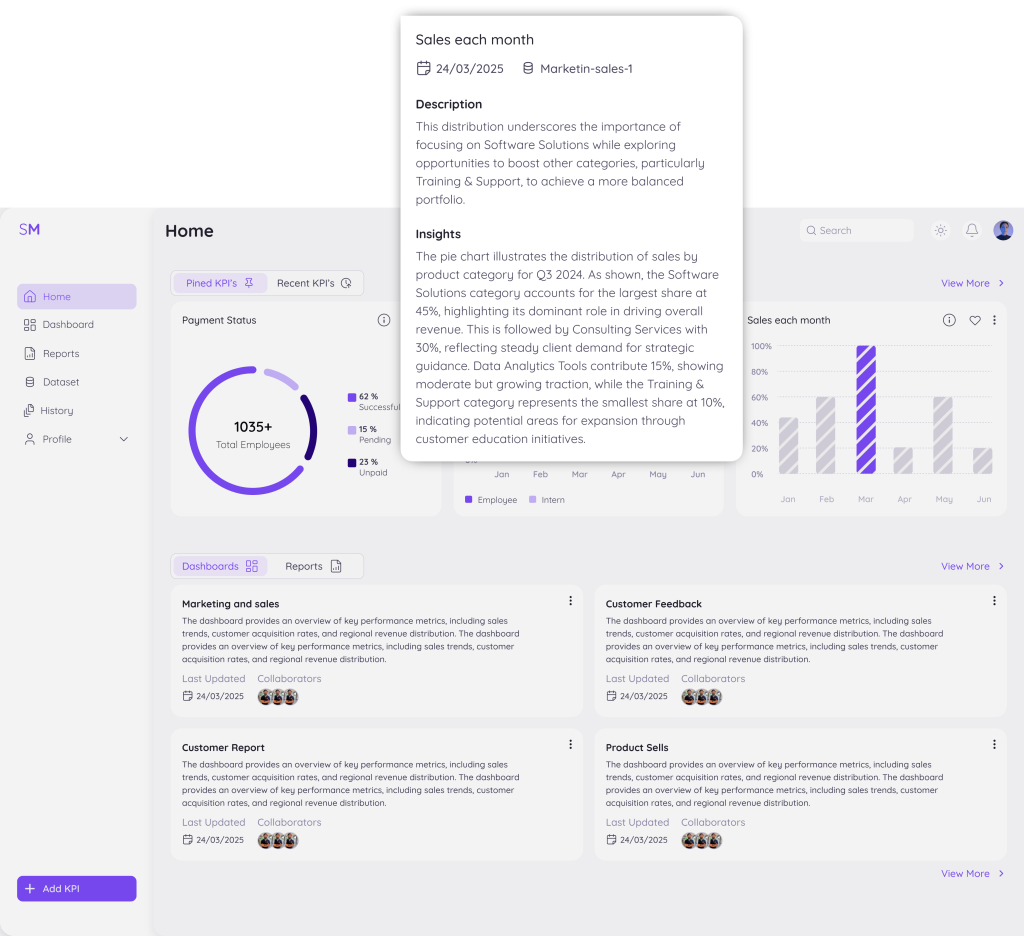 Our dashboards and reports update in real time—combining historical data with live inputs so you always have the most current insights at your fingertips.